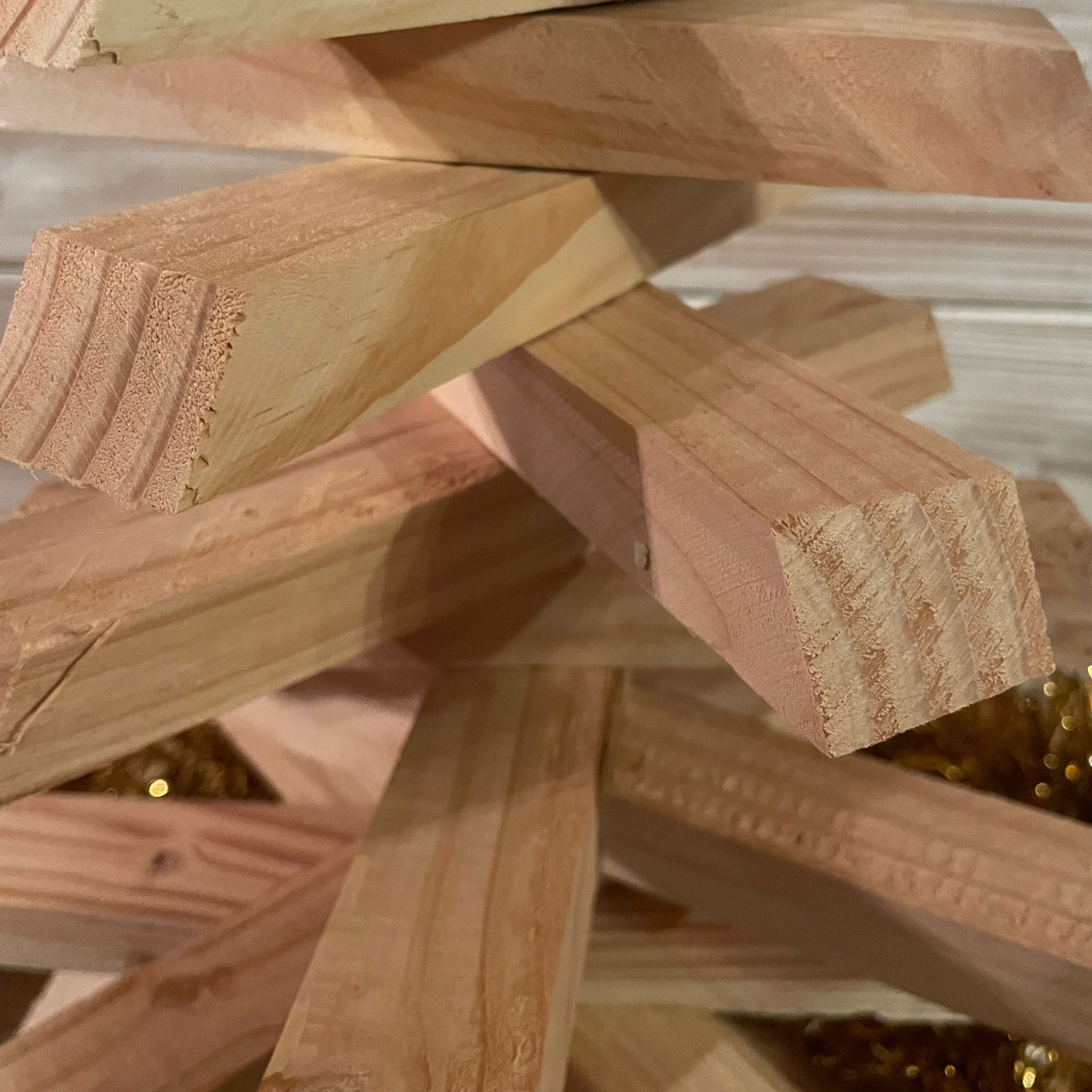 Réalisé à partir de chutes de bois pour favoriser leur réemploi.